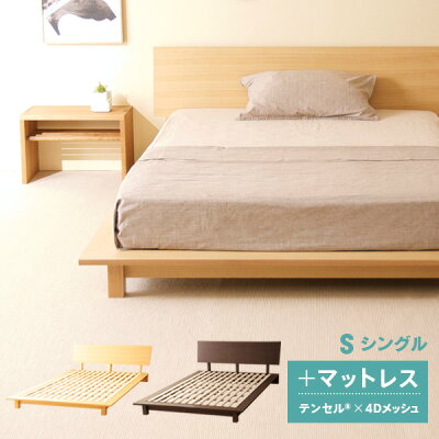 「木製ローベッド シータ S(シングル) + 高反発マットレス【テンセル×4Dメッシュ】(K20-S)」 シングルベッド すのこベッド ローベッド ローベット マットレス付き 石崎家具
